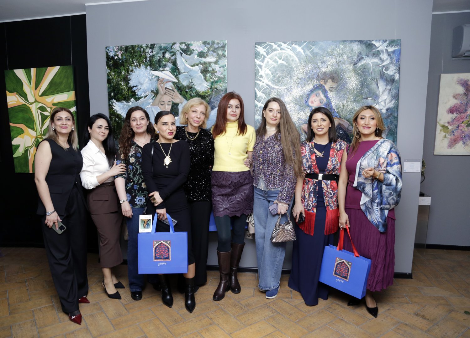 В уютном пространстве галереи в этот вечер собрались ценители искусства и представители творческой интеллигенции, среди которых были председатель правления ОАО "Азерхалча", заслуженный деятель искусств Эмин Мамедов, директор Центра творчества Максуда Ибрагимбекова Анна Ибрагимбекова, известные художники и молодые таланты. Атмосфера выставки напоминала тихий и светлый разговор о самом сокровенном - о чувствах, вдохновении и женском восприятии мира.