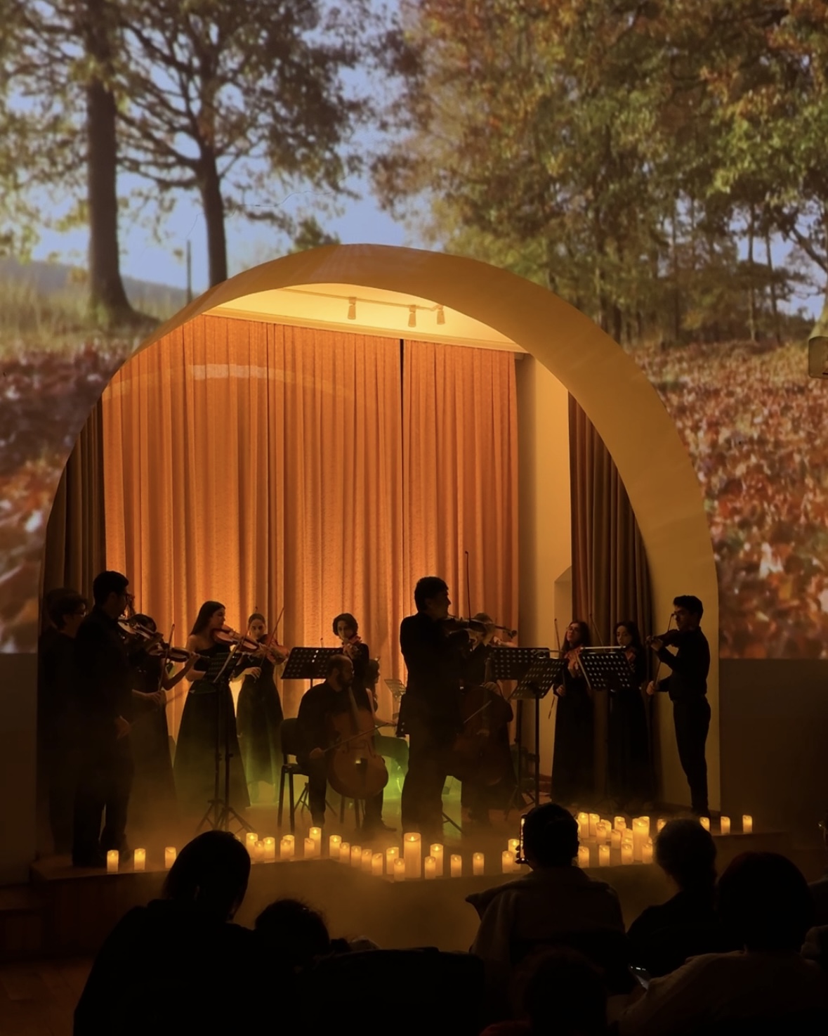 Концерт прошел в особой атмосфере - при мягком свете свечей, в сопровождении видеoинсталляций, соответствующих каждому времени года. Произведение прозвучало в живом исполнении камерного оркестра Kapellhaus.
