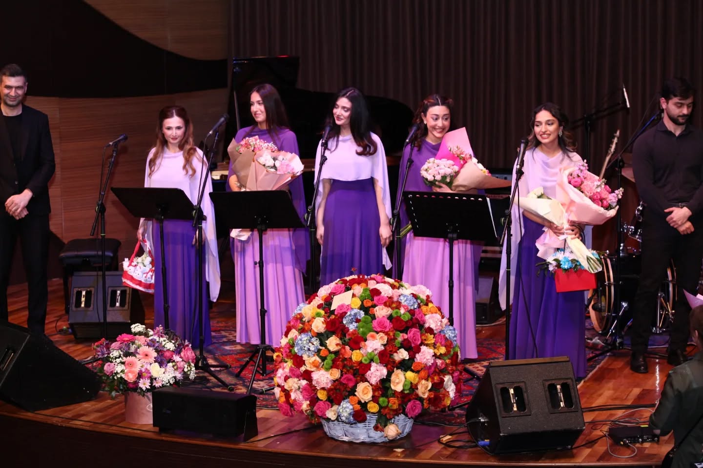 Их голоса и оригинальная подача родных и близких сердцу мелодий были вознаграждены продолжительными аплодисментами и теплыми улыбками зрителей. На сцене вместе с вокалистками настроение вечера создавали Этибар Ардебили (фортепиано), Шамси Мамедов (бас-гитара) и Али Гурбанов (ударные). Следует отметить, что современные аранжировки ничуть не нарушили очарования классики.