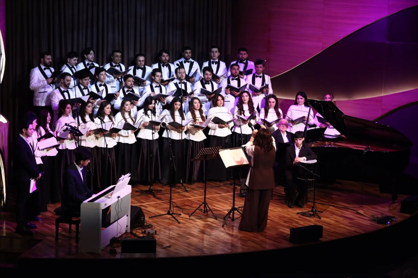 Хоровой коллектив имени Джахангира Джахангирова под управлением заслуженного педагога, доктора философии по искусствоведению и доцента Тараны Юсифовой продемонстрировал высокий профессионализм и создал особую атмосферу вечера.