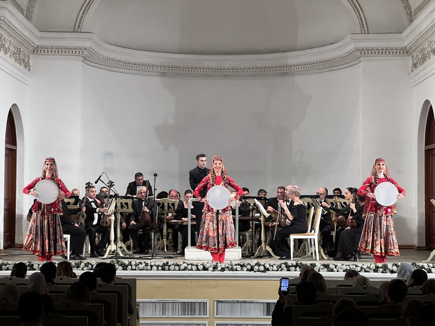 В течение вечера Азербайджанский государственный оркестр народных инструментов, танцевальная группа и хоровой коллектив, входящие в состав ансамбля, дополняя друг друга, придали программе яркость и динамичность. В исполнении солистов – народных артистов Гюльянаг Мамедовой и Тейюба Асланова, заслуженных артистов Алмаз Оруджовой, Сахиба Пашазаде (тар) и Нурланы Абдуллаевой, заслуженного работника культуры Самиры Алиевой, а также Анара Юсуба (кяманча), Вяфы Везировой, Шаига Асадова (балабан) прозвучали произведения азербайджанских и мировых композиторов.