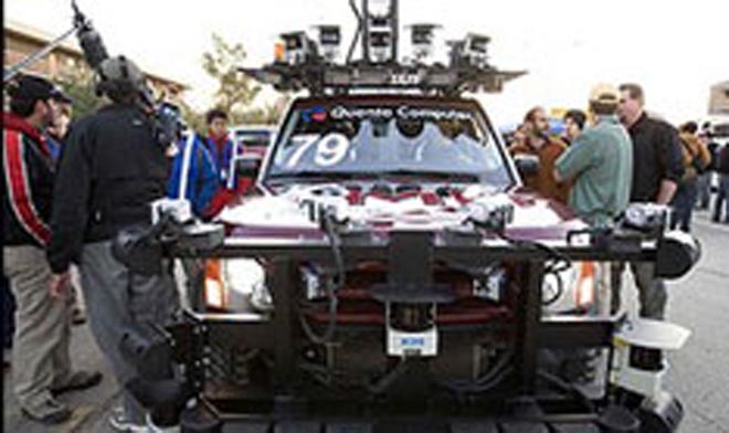 Пентагон провел необычную автогонку на заброшенной базе ВВС США в Калифорнии. В ней приняли участие машины, которые управляются с помощью лазерных сенсоров и видеокамер. Беспилотные мобили соревновались за приз в $2 миллиона. Одиннадцать авто и грузовиков должны были покрыть расстояние в 100 км в течение 6 часов, в то время как водители еще 50 обычных машин симулировали уличное движение. Самостоятельные "гонщики" передвигались без всякого вмешательства человека, используя сенсоры и радары для определения маршруты. Первым пересек финишную черту Volkswagen Passat Стэндфордского университета. Однако победитель будет определен позже на основании многих критериев, главным среди которых является анализ безопасности движения робота-машины, пишет Mignews .