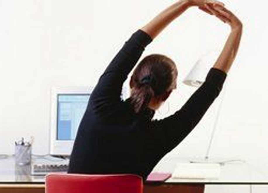 Вряд ли у вас есть возможность прилечь на офисный ковер и элегантно выполнить пару серий скручиваний. Поэтому сядьте на стул. Выпрямите спину, расправьте плечи и немного напрягите ягодицы. Сделайте глубокий вдох и на выдохе изо всех сил втяните живот. Выполните не менее 50 таких втягиваний. Упражнение следует выполнять именно за счет напряжения мышц пресса. Следите, чтобы диафрагма практически не поднималась. Очень важно ритмично вдыхать и выдыхать, поэтому не задерживайте дыхание.