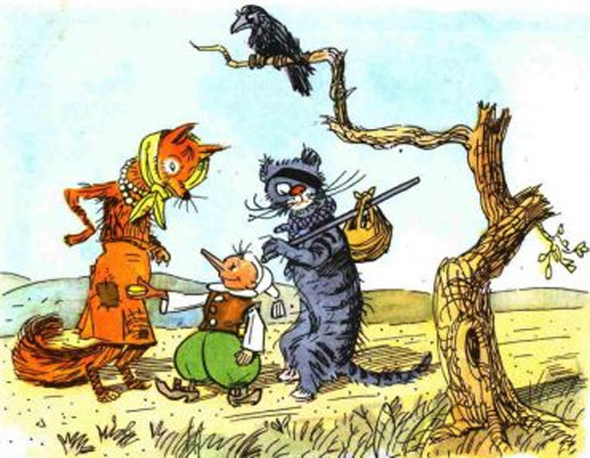 Еще один вечно страдающий персонаж, причем из той же сказки - Кот Базилио. Правда, в отличие от симпатяги Пьеро, он вызывает скорее раздражение. Ну прямо, как певец Теймур Амрах... Он тоже, практически не переставая, жалуется на бедность, обездоленность, на то, что все его обижают и т. д., и т.п. Иными словами, косит под юродивого. Хотя, сдается нам, на самом деле все не так уж плохо, и Теймур Амрах не столь беззащитен, как хочет казаться. Ведь и Кот Базилио на самом деле не был слеп, помните?