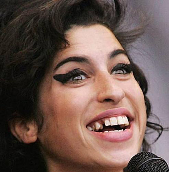 Для того чтобы исправить свою улыбку, британской певице Эми Уайнхаус пришлось бы потратить немалую часть гонораров, и без того не слишком больших благодаря тому, что Уайнхаус чаще пребывает в реабилитационных клиниках, нежели выступает на сцене. А пока Эми вполне может соревноваться с Тайсоном в звании за самую страшную улыбку.