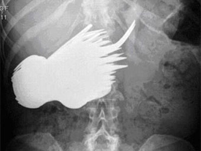 52-летняя Маргарет Даалман, работающая секретарем в одном из роттердамских агентств недвижимости, попала в больницу с жалобами на боли в животе. Рентгеновское обследование показало, что в ее пищеварительном тракте находится множество посторонних предметов.