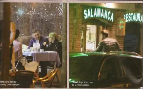 Шакира и Херард Пике были замечены в конце прошлой недели в Барселоне. Они встретились после футбольного матча Пике и отправились поужинать в ресторан. Парочка сделала все возможное, чтобы держаться подальше от папарацци, однако фотографам из журнала Lecturas все-таки удалось их поймать. Сообщается также, что помимо певицы и футболиста в ресторане также были и родители Шакиры. Все вместе они пробыли там до 5 утра.