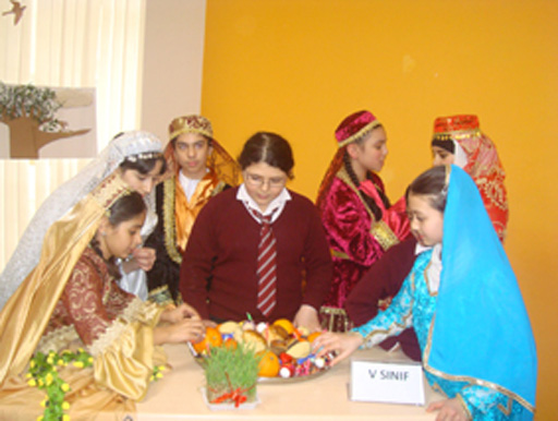 Учащиеся европейско-азербайджанской школы в Баку, так же как и другие, отметили Новруз и представили не только концертную программу, по традиции перепрыгнули через костер, но и своими руками решили испечь шекербуру (своеобразный пирожок с сахаром, с азербайджанского: шекер-сахар, бура- завитушки) и другие сладости.