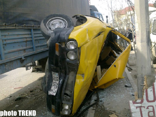 Как сообщили Trend очевидцы происшествия, автомобиль марки КамАЗ с государственным номером 01-АС-482, двигавшийся из пос. Баладжары в направлении Сумгайыта, потеряв управление, столкнулся с Mercedes'ом с государственным номером 90-HD-433. Далее КамАЗ столкнулся с маршрутным автобусом, после чего врезался в припаркованный у обочины автомобиль "Рено" с госномером 10-СР-218.