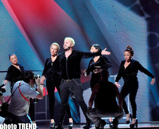 В Баку на сцене "Baku Crystal Hall" состоялась репетиция представителя Грузии на "Евровидении-2012" Анри Джохадзе.