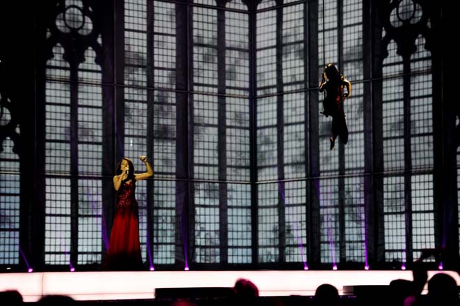 Во время исполнения композиции на сцене вместе с Дилярой находилась воздушная гимнастка. Воздушная гимнастка выступала на восьмиметровой трапеции. Это первый случай в истории "Евровидения", когда номер сопровождался таким зрелищным гимнастическим номером. Диляра Кязимова выступила в темно-красном платье, и аналогичный наряд был на воздушной гимнастке. Тем самым проводилась параллель между исполнительницей и гимнасткой, а также создавалось ощущение "отражения" Диляры Кязимовой. По задумке режиссера-постановщика, воздушная гимнастка - это образ нестандартного мышления. Благодаря ему, каждый может найти новое в обыденной жизни, увидеть необычное в обычном, другими словами, раскрыть "многогранность души".
