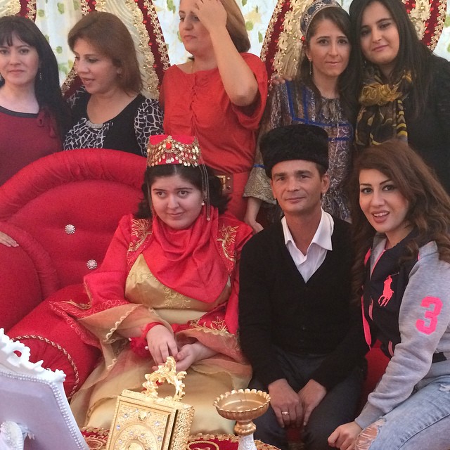 В это время молодые люди собираются отдельно. Кто-то из родственников невесты кладет перед женихом и его друзьями двухцветный чай. Те пьют чай и кладут на блюдце деньги. Одна из девушек приносит им хну. Они чуть-чуть окрашивают кончики мизинцев хной.