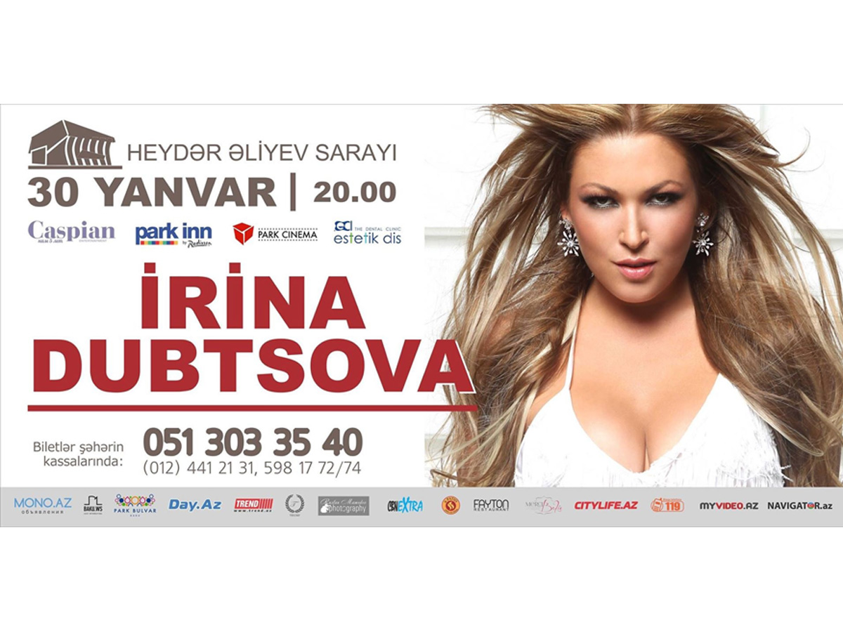 Напомним, что 30 января 2015 года на сцене Дворца Гейдара Алиева в Баку впервые пройдет шоу-концерт Ирины Дубцовой.