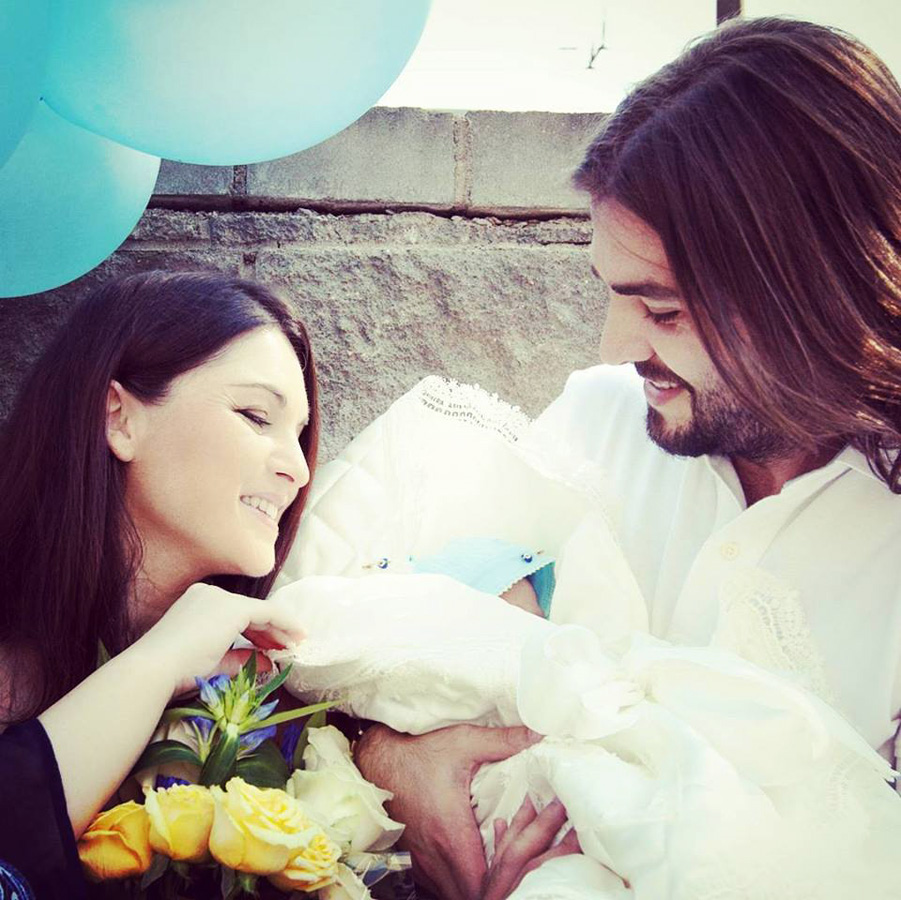 На фотоснимке изображена певица и ее супруг Гёкхан Джингёз, держащий на руках новорожденного сына.
