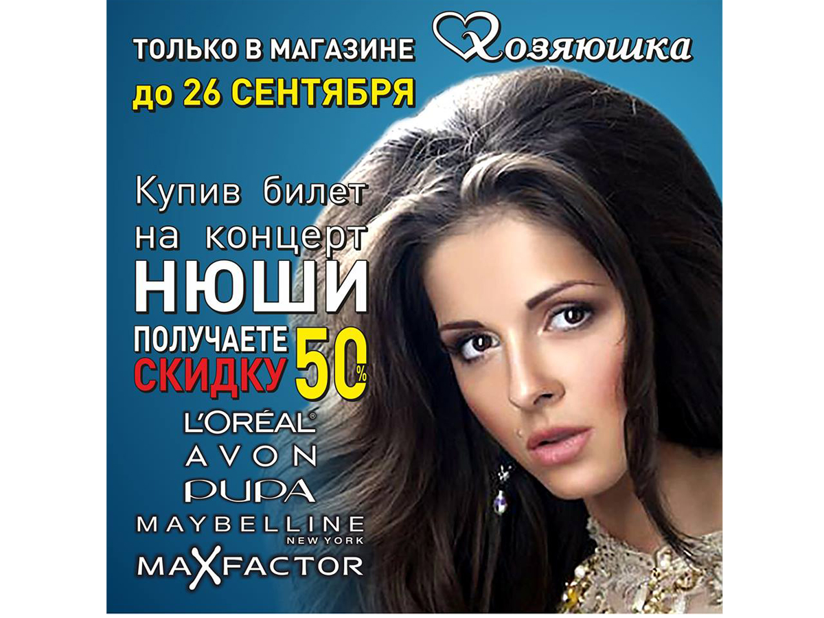 Max Factor - MayBelline - Loreal - Pupa и AVON при покупке 1 билета на концерт Нюши.
