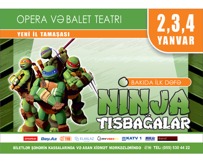 БАКУ /Trend Life/ - В Баку на сцене Государственного театра оперы и балета со 2 по 4 января состоится премьера детского популярного спектакля "Черепашки-ниндзя", по мотивам известного одноименного мультфильма и комиксов, сообщили Trend Life организаторы мероприятия.