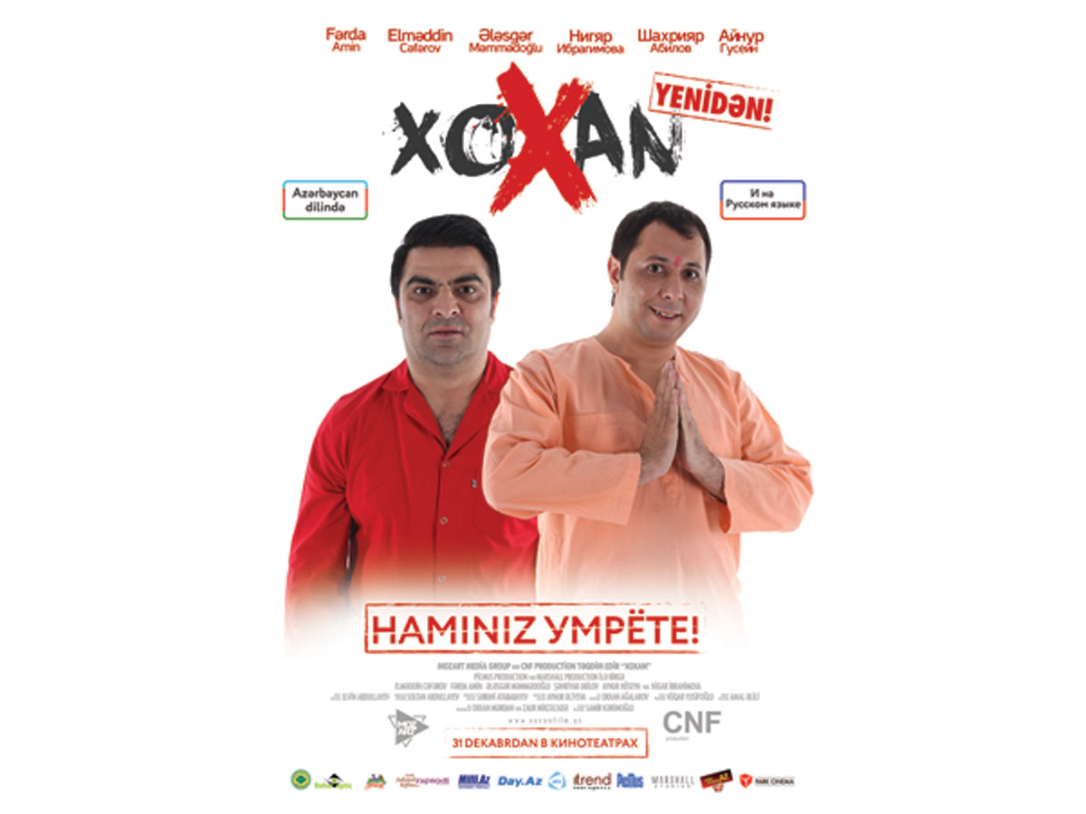 БАКУ /Trend Life/ - По многочисленным просьбам зрителей комедия режиссера Самира Керимоглу "Хохан" вновь возвращается в бакинские кинотеатры. Причем не только на азербайджанском, но и продублированным самими актерами фильма на русский язык, сообщил Trend Life продюсер фильма Орхан Мердан.