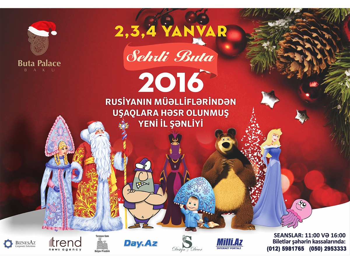 Спектакли пройдут 2,3 и 4 января. Начало сеансов в 11:00 и 16:00. Стоимость билета - 30 AZN. Билеты можно приобрести во всех кассах города