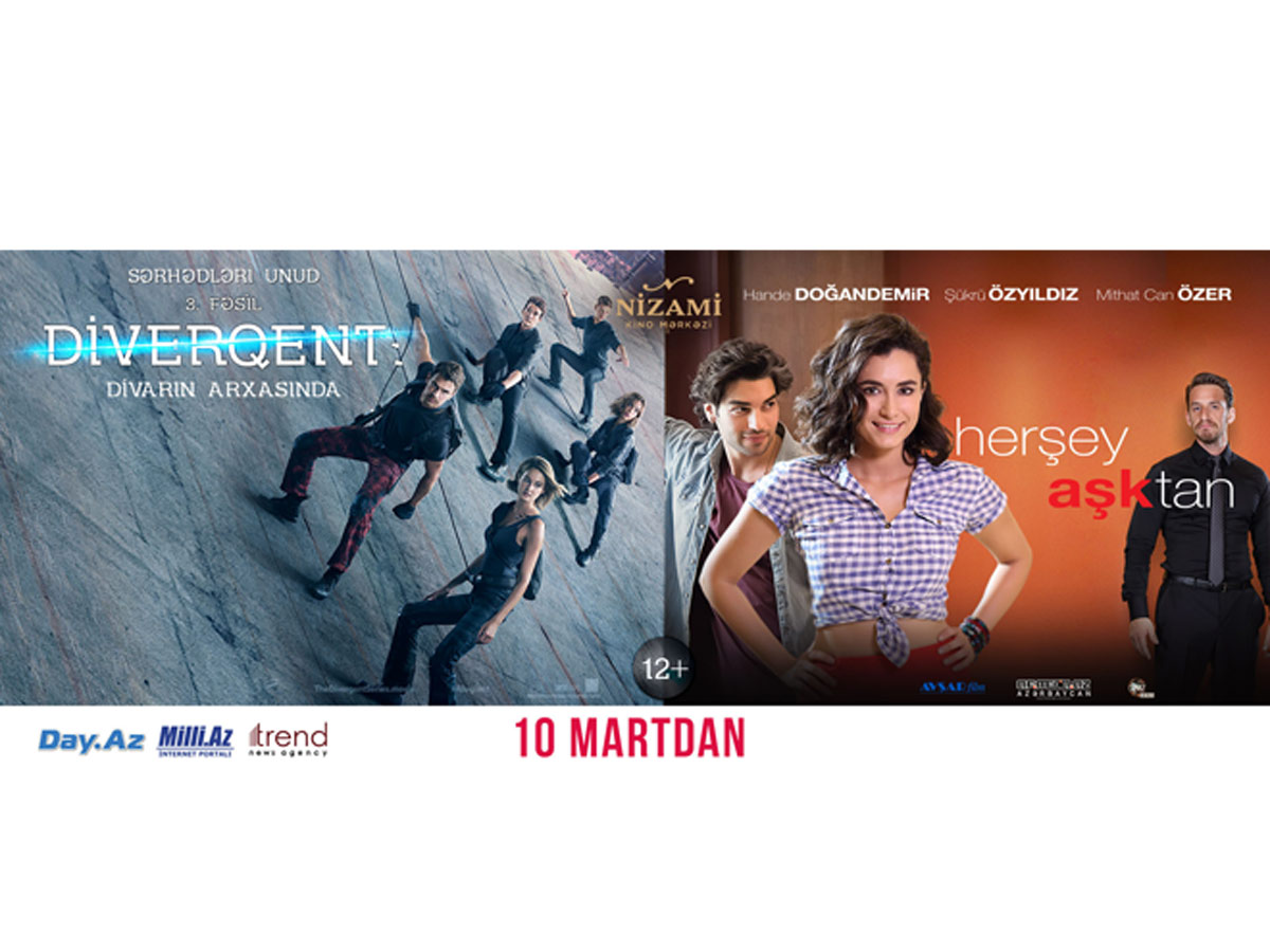 В Киноцентре "Низами" с 10 марта начался показ фильмов "Дивергент, глава 3: За стеной" (США) и "Hər şey aşktan" (Турция).