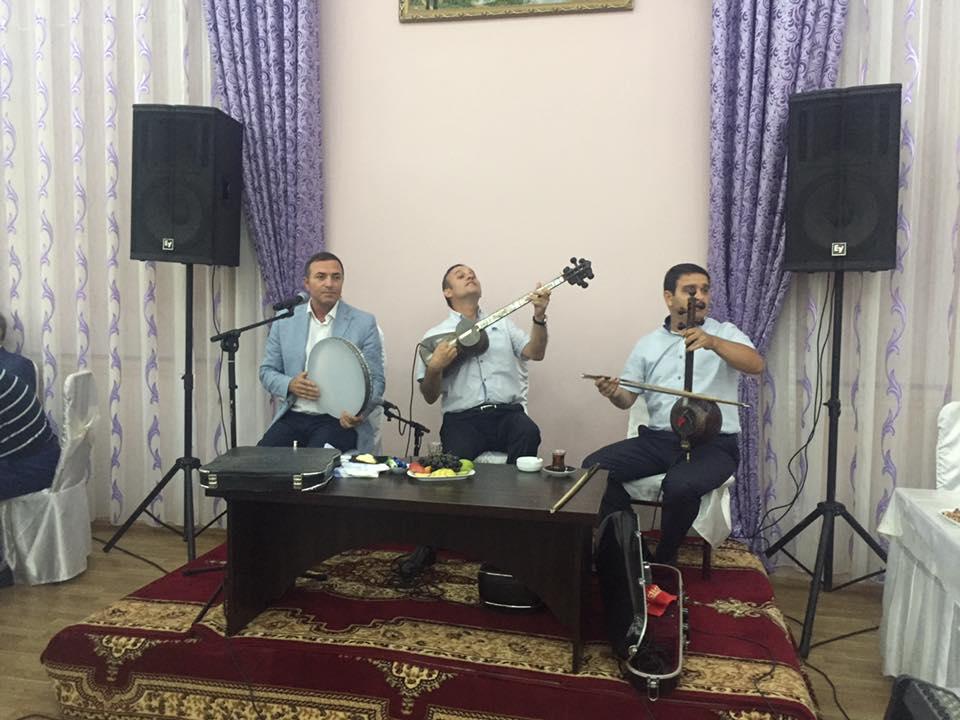По древней традиции, жених решил провести мужскую свадьбу, т.е. на праздничном вечере были только мужчины. Было множество поздравлений от гостей, но главным, конечно же, стало выступление музыкантов и исполнителей мугама и народных песен.