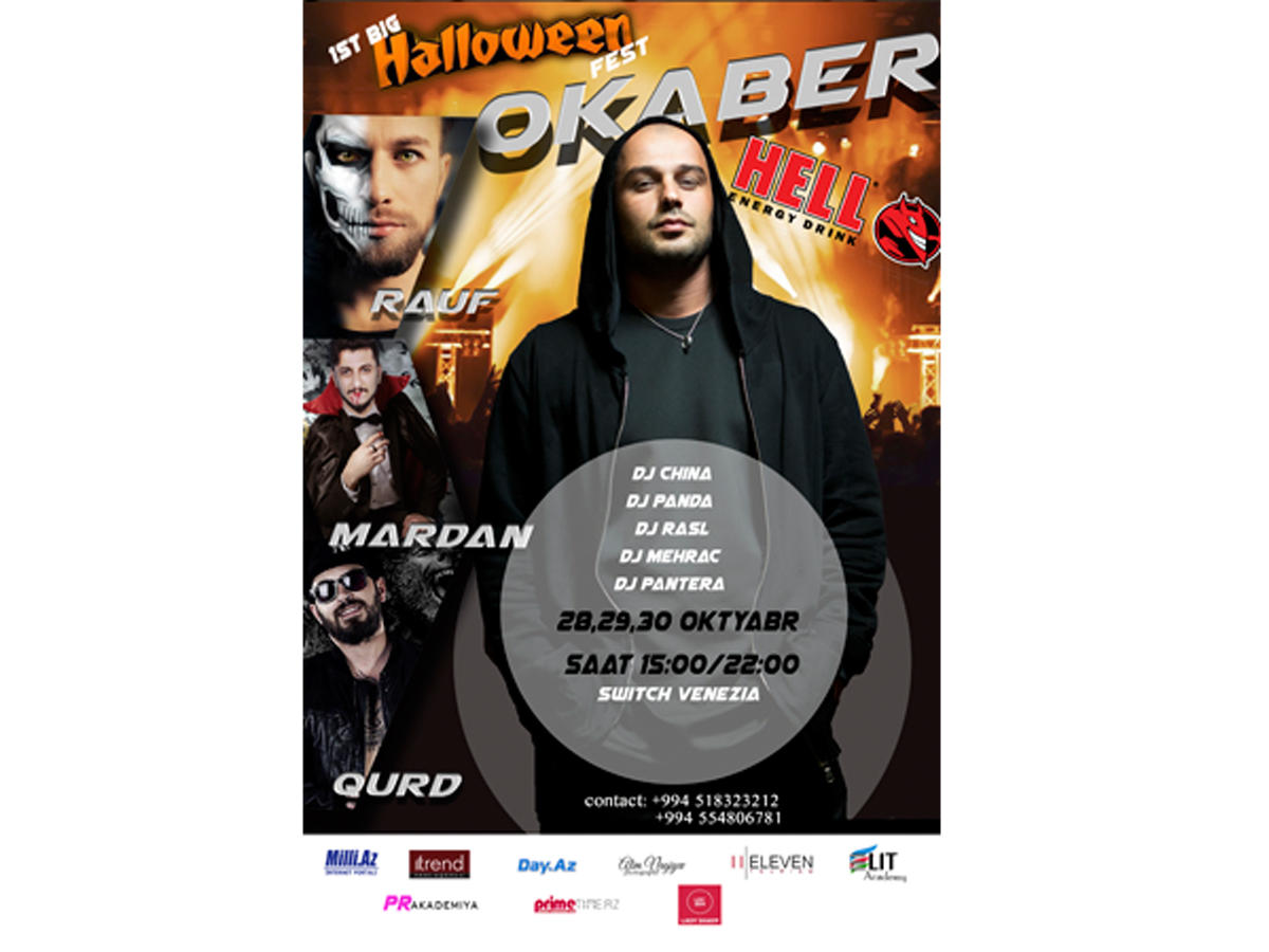 До 17 октября вы сможете приобрести билеты за 20 AZN. В цену билета входит - выступления Rauf - 40, Okaber , Qurd, бесплатные напитки HELL ENERGY, face art, дискотека, фотосессия, интересные призовые конкурсы и самое главное - безлимитное веселье. Своими треками вечера зажгут диджеи - DJ China, Dj Panda, Dj Pantera, Dj Fanur, Dj Pasha, Dj Rasl, Dj Osm.