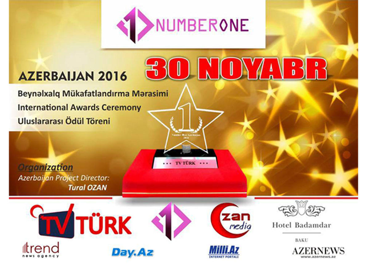 БАКУ /Trend Life/ - В отеле Kempinski Badamdar Baku 30 ноября пройдет церемония награждения международной премии Number One, сообщил Trend Life руководитель проекта в Азербайджане, телеведущий Турал Озан. Организатор проекта – турецкий канал Türk TV. Исполнительный продюсер – Азад Мирза.
