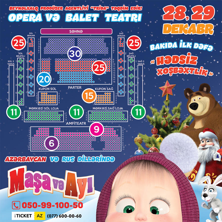 БАКУ /Trend Life/ - Международный продюсерский центр TriDa представляет новый новогодний интерактивный спектакль "Безграничное счастье" по мотивам всеми любимого мультсериала "Маша и Медведь". Спектакль на азербайджанском и русском языке будет представлен 28 и 29 декабря на сцене Азербайджанского академического театра оперы и балета.