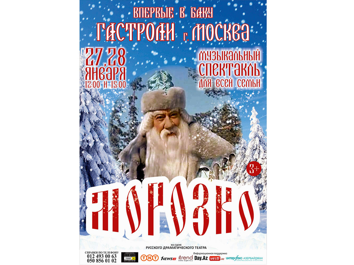 БАКУ /Trend Life/ - Впервые в Баку, в дни зимних школьных каникул, только 27 и 28 января, на сцене Государственного русского драматического театра имени Самеда Вургуна пройдут гастроли московских артистов с настоящей зимней сказкой, спектаклем для всей семьи - "Морозко"
