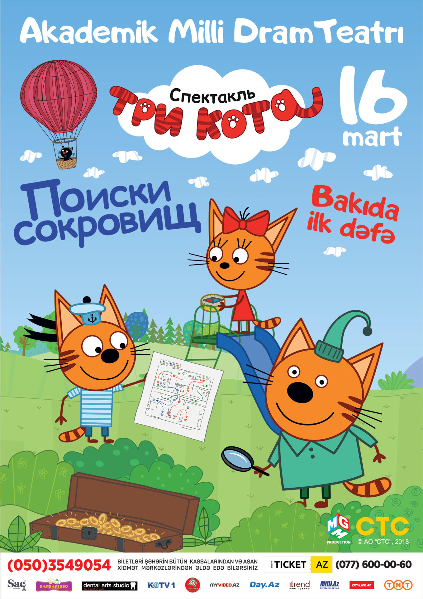 БАКУ /Trend Life/ - Второй год подряд команда MGМ Production организовывает в Баку детский спектакль «Три Кота». В прошлом году котята приезжали с программой «Три Кота - День варенья», а в этом году они едут к нам с совершенно новым спектаклем «Три Кота - В поисках сокровищ».