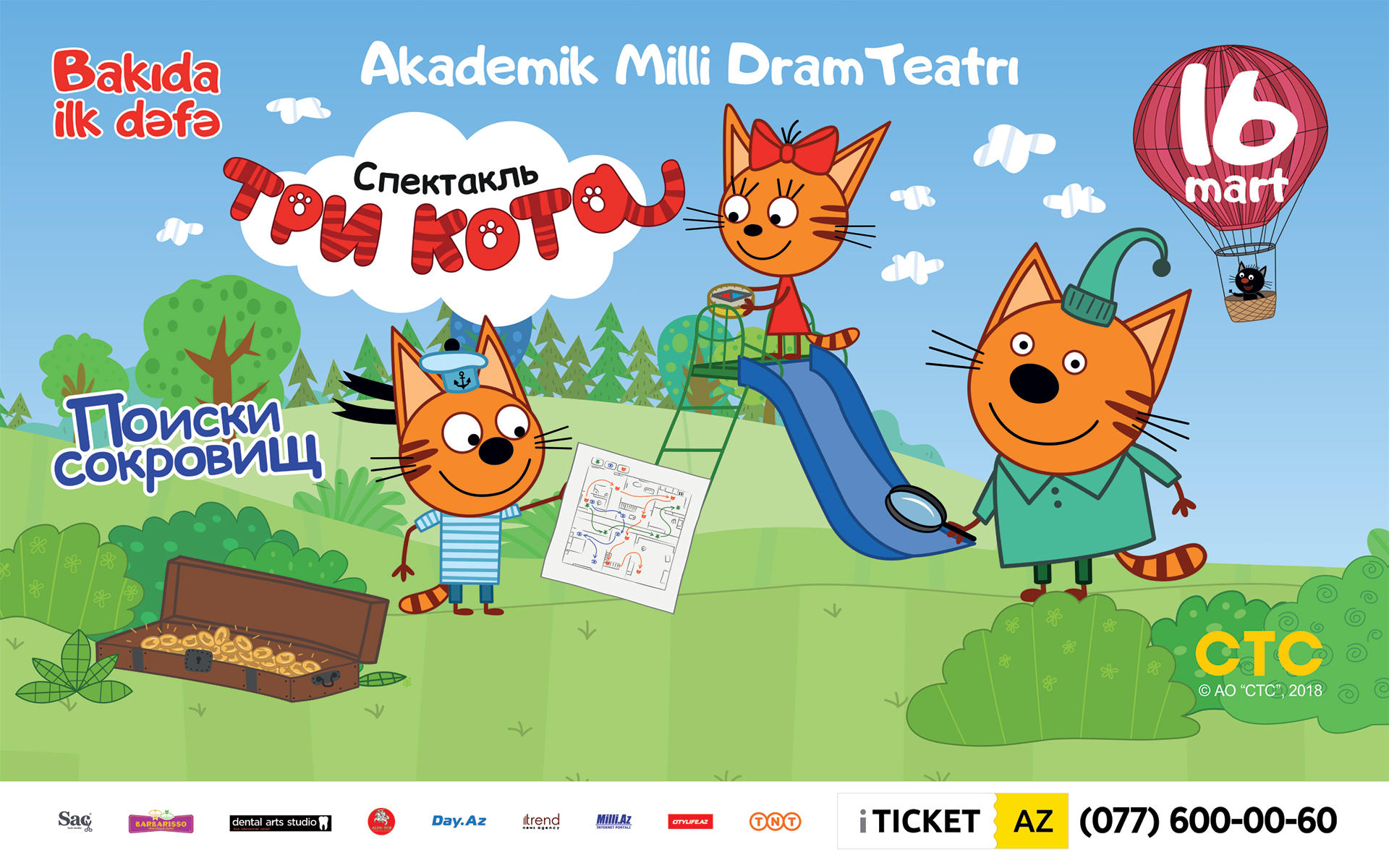 БАКУ /Trend Life/ - Второй год подряд команда MGМ Production организовывает в Баку детский спектакль «Три Кота». В прошлом году котята приезжали с программой «Три Кота - День варенья», а в этом году они едут к нам с совершенно новым спектаклем «Три Кота - В поисках сокровищ».