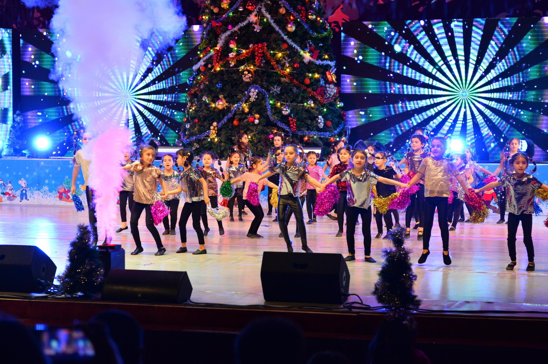 В праздничном вечере были представлены красочные и веселые номера с Дедом Морозом и Снегурочкой, любимыми сказочными персонажами, песнями, танцами, играми и сюрпризами. В концертной программе приняли участие участники международного детского фестиваля «Зима».