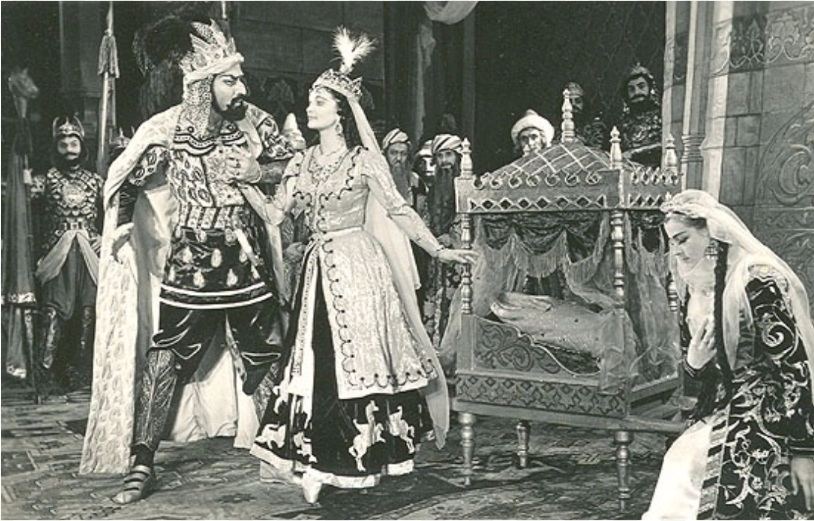 Таким и был сделан грим. Облик великого поэта дополняли чалма и просторные белоснежные одежды, придававшие всей фигуре величественно-монументальные черты. Фактически впервые в истории на театральной сцене был представлен образ Низами. С большим воодушевлением Бюль-Бюль исполнил свою партию, его голос лился широко и свободно, доставляя огромное наслаждение зрителям. После триумфа в Баку, в 1949 году опера была представлена во время Дней культуры азербайджанского музыкального искусства в Москве. В этой опере также блистали такие мастера, как Сона Мустафаева (Азра, девушка влюбленная в Низами, дочь Амина Хариса), Фатма Мухтарова (Рена, девушка в которую был влюблен Низами), Гусейнага Гаджибабабеков (Хосров, правитель Гянджи), Агабаба Буньядзаде (Гызыл Арслан, правитель Государства Ильдегизидов), Беюкага Мустафаев (Амин Харис, преемник мусульманского халифата). Режиссером-постановщиком был Исмаил Хидаятзаде, художником-оформителем – Федор Гусак, а за дирижерским пультом был сам Афрасияб Бадалбейли.