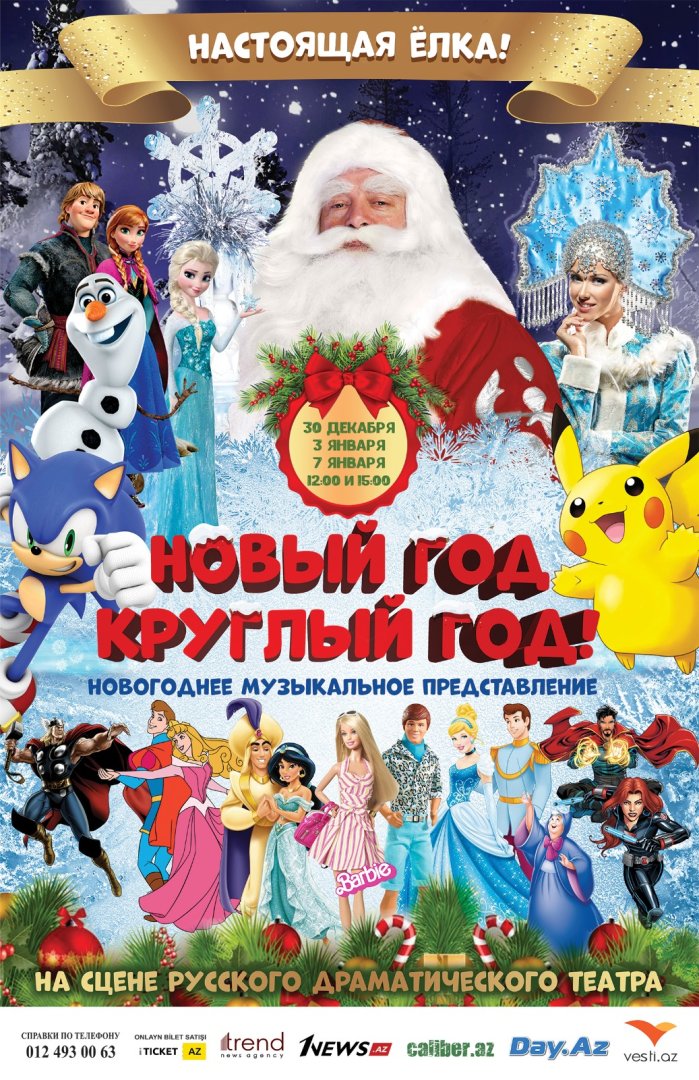Билеты продаются во всех централизованных кассах города Баку, а также онлайн https://iticket.az/ru/events/kids/novyj-god-kruglyj-god.