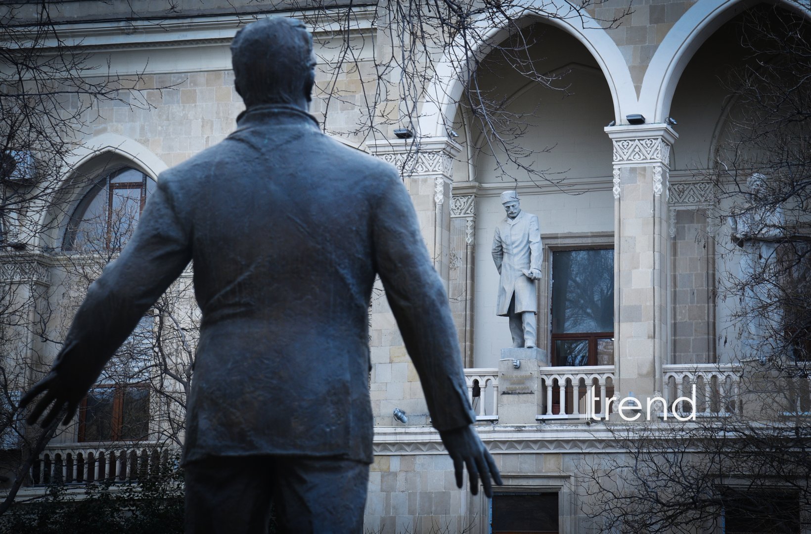 БАКУ /Trend Life/ - Многие из нас десятки раз проходили мимо Национальной библиотеки имени Мирзы Фатали Ахундзаде - главного книгохранилища страны, расположенного в самом центре Баку. Мы спешили по своим делам, назначали встречи у сада "Сахиль", любовались строгой архитектурой здания библиотеки… И почти всегда наш взгляд скользил выше - по величественному фасаду, где в лоджиях, словно хранители времени, застыли каменные фигуры выдающихся деятелей мировой и азербайджанской культуры. Но задумывались ли мы, чьи статуи там установлены и кто является их авторами? Представляем читателям Trend Life интересный материал с фотографиями Арифа Гулузаде.