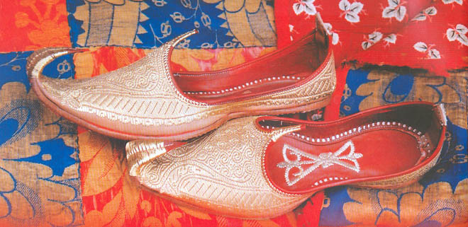 Особенно модной обувью в Азербайджане на рубеже XV-XVI веков была обувь без задников на небольшом каблуке, обычно в виде танкетки с острым загнутым носиком. Эта обувь, получившая название "башмак", носили аристократы и женщины. Женские башмаки отличались изяществом формы и своеобразным декором, шились они из кожи ярких цветов с использованием бархата, вышивки из канители (гюльба-тын), бисера, серебряных или золотых бляшек. Получалась веселая, поэтичная композиция. Со временем изящество и тонкость рисунка, пышная декоративность композиции, красочная гармония, основанная на ритмичном чередовании ярких тонов, превратили ремесло мастеров в высокое декоративно-прикладное искусство, которое радует глаз наших заокеанских гостей и сегодня.