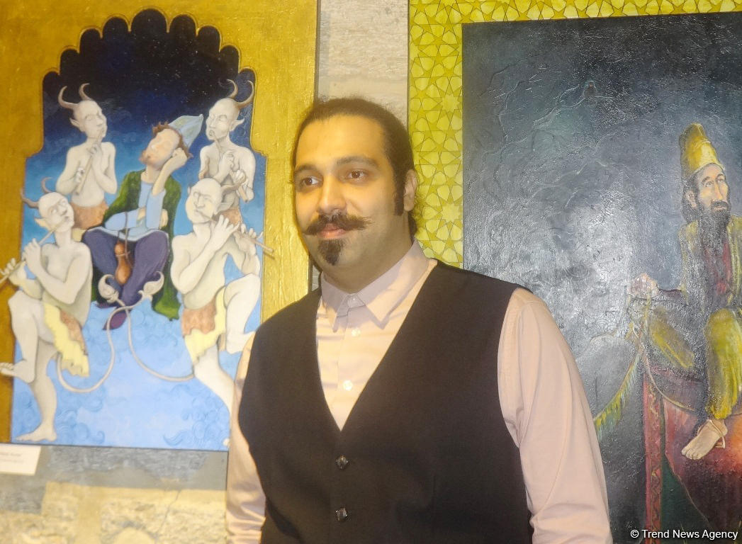 БАКУ/Trend Life/ - В галерее "Art Tower" в Ичеришехер открылась выставка молодого талантливого азербайджанского художника Зохраба Саламзаде под названием "Sirlərin ahəngi" ("Секреты гармонии"). Вдохновение для своих картин Зохраб Саламзаде черпает из истории и религии. Есть несколько тем, которые художник чаще всего отображает на своих полотнах - это Ичеришехер, джинны и дервиши… О мистической составляющей персонажей своих картин Зохраб Саламзаде рассказал корреспонденту Trend Life.