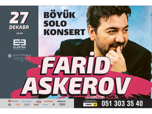 БАКУ /Trend Life/ - Сегодня в Elektra Events Hall в 20.00 пройдет большой соло-концерт джазового исполнителя Фарида Аскерова, сообщает Trend Life. В видеообращении Фарид приглашает всех сегодня на праздничный вечер, на котором представит свои лучшие и новые композиции.