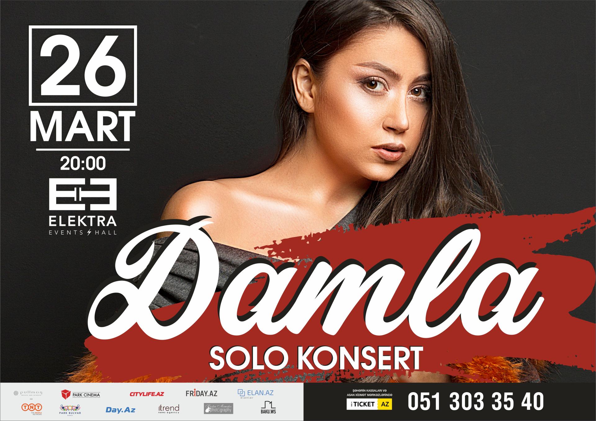 БАКУ /Trend Life/ - 26 марта в 20.00 восходящая звезда азербайджанской эстрады Дамла выступит в Баку с большим сольным концертом на сцене Elektra Events Hall. Песни на её официальном канале YouTube набирают миллионы просмотров, а в комментариях преобладают восторженные отзывы об искренней манере исполнения певицы. В программе большого концерта прозвучат как уже ставшие популярными хиты "Can dostum", "Bilirmisən", "Fırtına", так и абсолютно новые композиции.