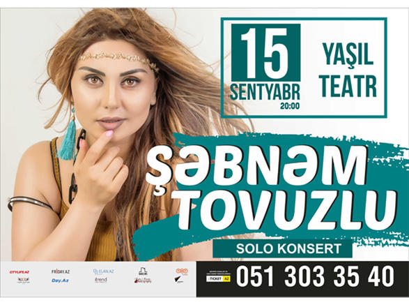 БАКУ /Trend Life/ - Азербайджанская певица с особой манерой исполнения Шабнам Товузлу, 15 сентября в 20.00, выступит со своим первым соло-концертом в Зеленом театре Баку, сообщает Trend Life. Концерт посвящен Дню знаний в Азербайджане.