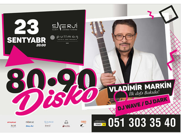 После выступления Владимира Маркина, с 21:30 до 02:00 будет представлена дискотека 80-90х от Dj Wave & Dj Dark, прозвучат хиты Моdern Talking, Boney M, Sandra, Eruption, Adriano Celentano, Ottawan, C.C.Catch, Dr Alban, Michael Jackson и многих других.