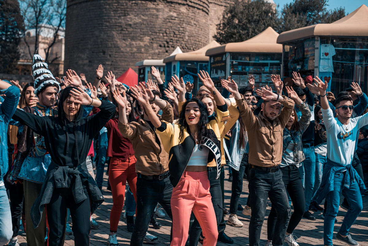 Флешмоб организован в древней части столицы Азербайджана - Ичери Шехер, на площади рядом с Девичьей Башней. Поддержку Диляре Кязымовой в проведении акции оказали 200 членов Союза молодежных студенческих организаций Азербайджана.