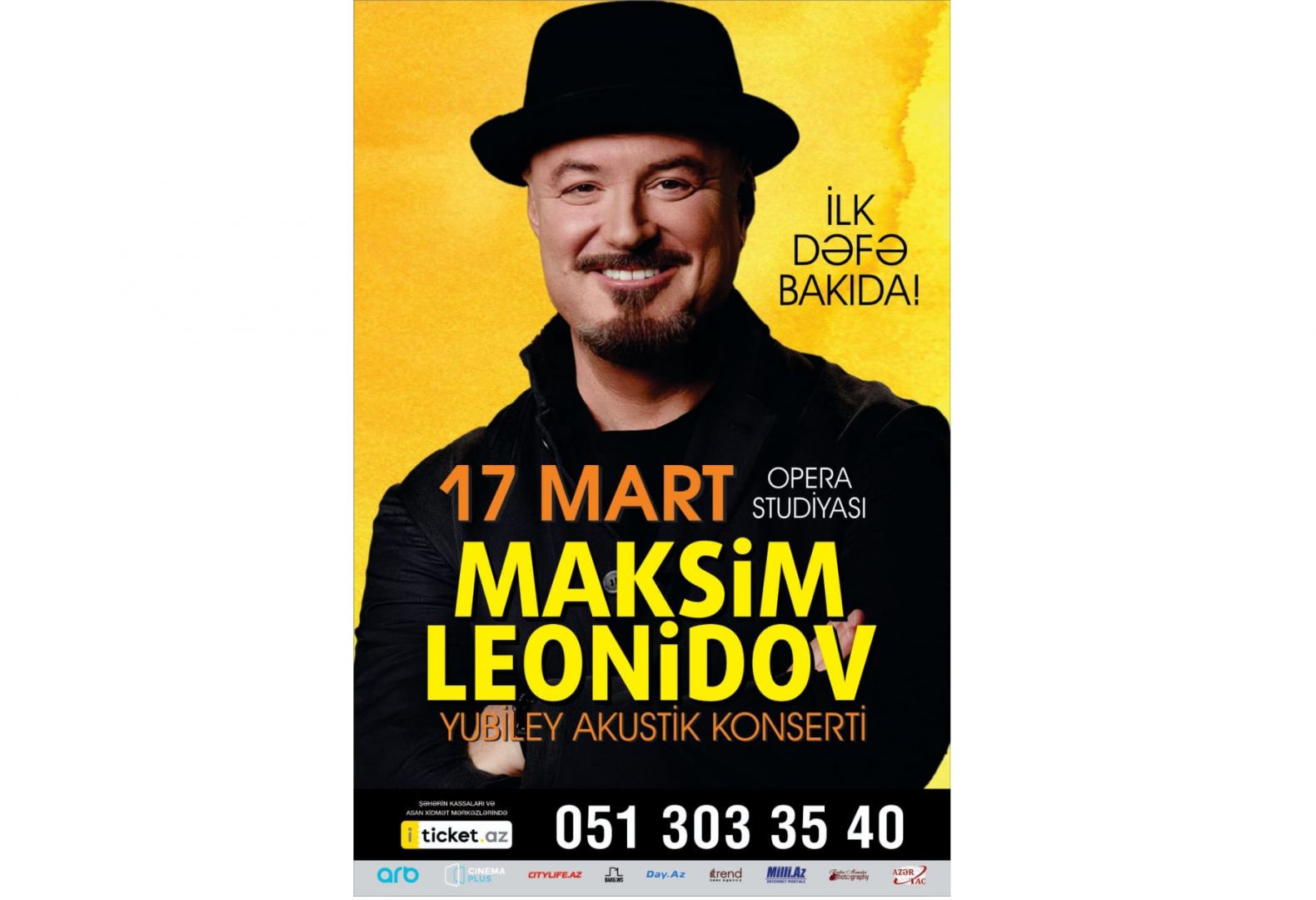 Билеты можно приобрести в кассах города и онлайн по ссылке https://iticket.az/ru/events/concerts/maksim-leonidov/83547