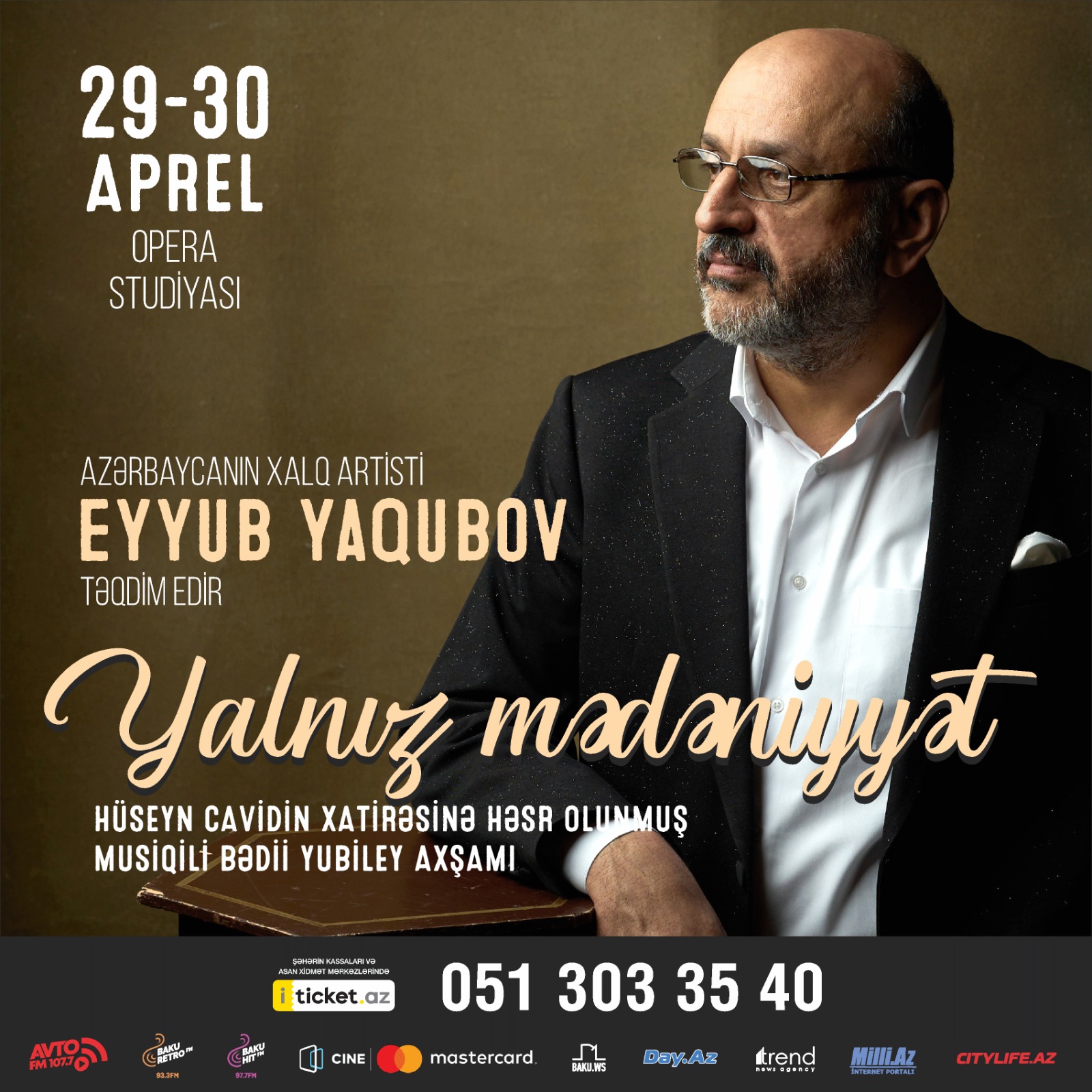 Билеты во всех кассах Баку и онлайн https://iticket.az/ru/events/concerts/eyyub-yagubov-yalniz-medeniyyet/150971