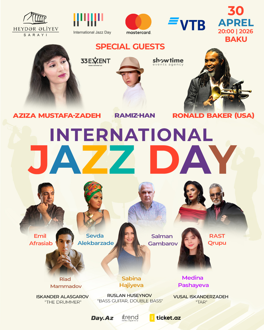 Международный день джаза - ежегодное событие, учреждённое ЮНЕСКО и отмечаемое 30 апреля с 2012 года. Концерт обещает стать ярким праздником музыки и культурного обмена, объединяющим звёзд азербайджанского и мирового джаза, молодых талантов.