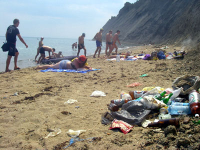По его словам, морской воздух способствует появлению хорошего аппетита, а потому все привезенное съедается, люди отдыхают, загорают, а потом уезжают, оставляя после себя разбросанные арбузные и дынные корки, початки кукурузы и пустые пластиковые бутылки.
