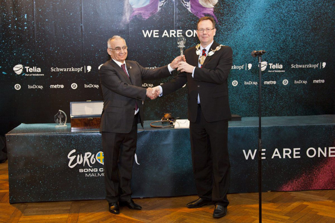 Сегодня в четверг в Мальмё состоялась торжественная церемония передачи символа "Евровидения". Глава Исполнительной власти Баку Гаджибала Абуталыбов передал символический ключ "Евровидения" мэру Мальмё Ильмару Рееппалу. И с этого момента Мальмё официально взял на себя функции хозяина Международного песенного конкурса "Евровидение", сообщает Trend Life со ссылкой на официальный сайт конкурса.