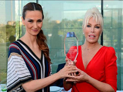 Известная турецкая певица и актриса Ажда Пеккан удостоена а в Баку специальной награды "Bir ömür sanata, kültüre, insanlığa hizmet ödülü" ( "За многолетнюю творческую деятельность, развитие культуры и благотворительность"), который был вручен председателем Общественного объединения "Институт международных исследований Евразии", депутатом Милли Меджлиса (парламента) Азербайджана Ганирой Пашаевой, сообщает Trend Life.