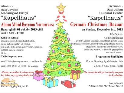 В германо-азербайджанском культурном обществе "Капелльхаус" в Баку пройдет Рождественская ярмарка, сообщили Trend Life в "Капелльхаусе".
