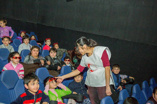 В акции приняли участие около шестидесяти воспитанников школы-интерната №7 Сураханского района, которым были показаны мультфильмы в 3D и накрыт праздничный стол. В мероприятии приняли участие исполнительный директор общества Красного полумесяца Азербайджана Шабан Шаев, президент Центра культуры "12 May" Сабухи Раджаб и другие.