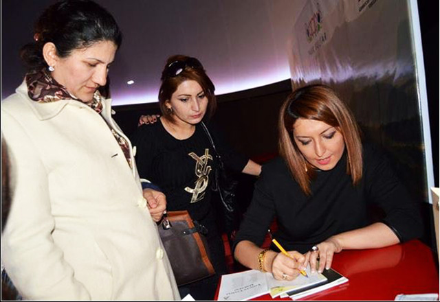 В заключении презентации прошла автограф - сессия Гюнай Маликгызы книги "Yaddan çıxmaz Qarabağ", были сделаны фотоснимки с непосредственными участниками проекта - молодыми людьми, воспоминания которых легли в основу книги.